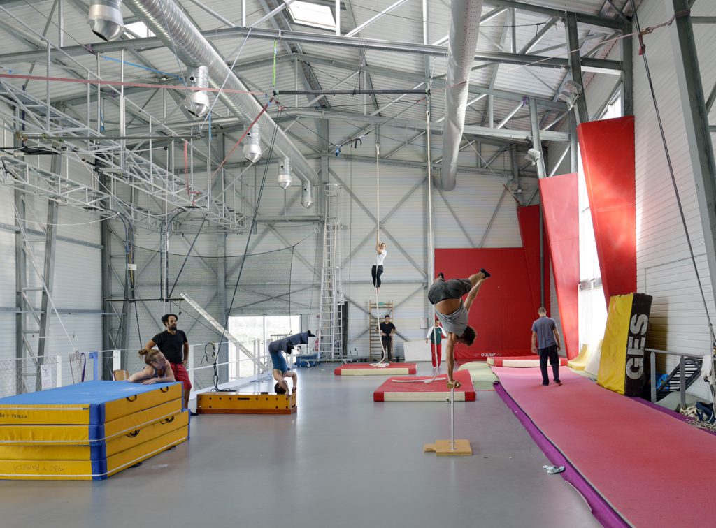 Réhabilitation d’un ancien hangar militaire en centre circassien dédié à l’accueil de compagnies et à la diffusion de spectacles ; composé d’une salle de spectacles, de salles d’entraînement, d’un accueil, d’un bar, de bureaux.