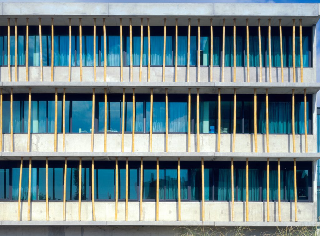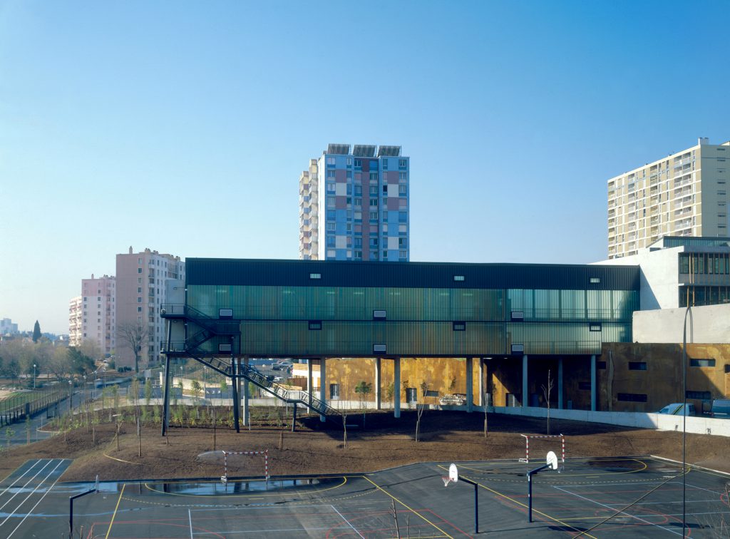 « Ces collèges donnent un point d’ancrage au quartier et, de là, le métamorphosent. C’est un vrai miracle. Ce double collège n’est pas brutal, il est volcanique. Son authenticité contamine son environnement, il n’est plus erratique puisqu’il a trouvé avec lui son point d’ancrage. Je suis sidéré chaque fois que j’y retourne. Cette falaise rouillée, ces deux lames qui la chevauchent, ces escaliers métalliques qui les escaladent comme des plantes parasite, ces bambous qui font vibrer les façades. Tout est juste et résonne sur les barres et les tours qui les entourent. Un beau retournement de situation »