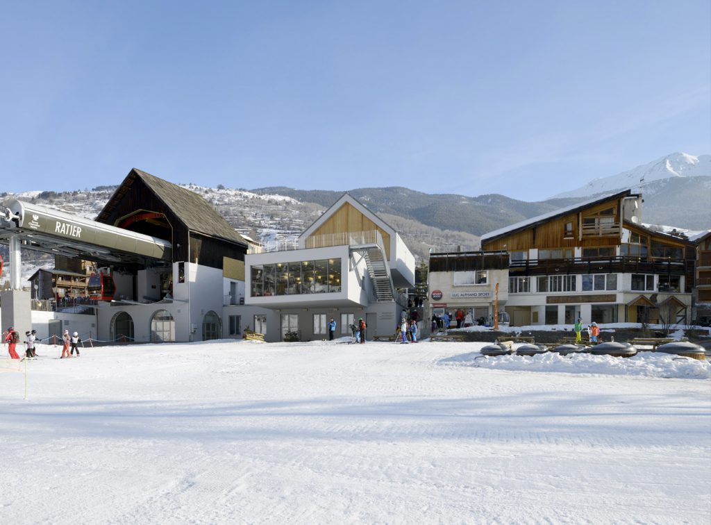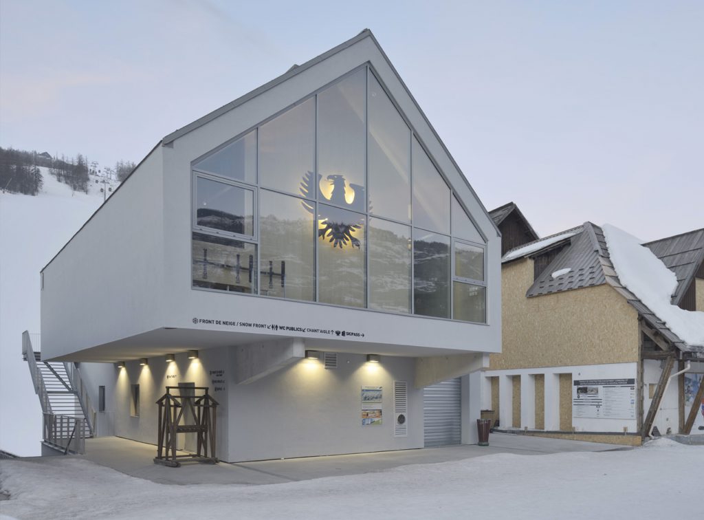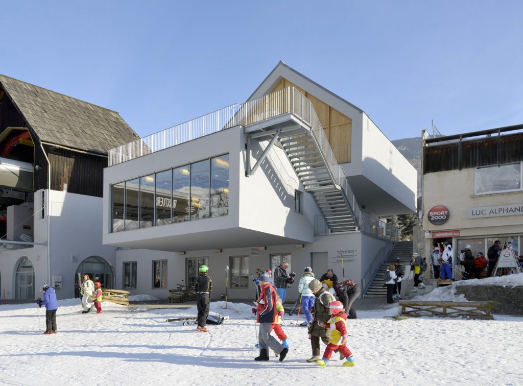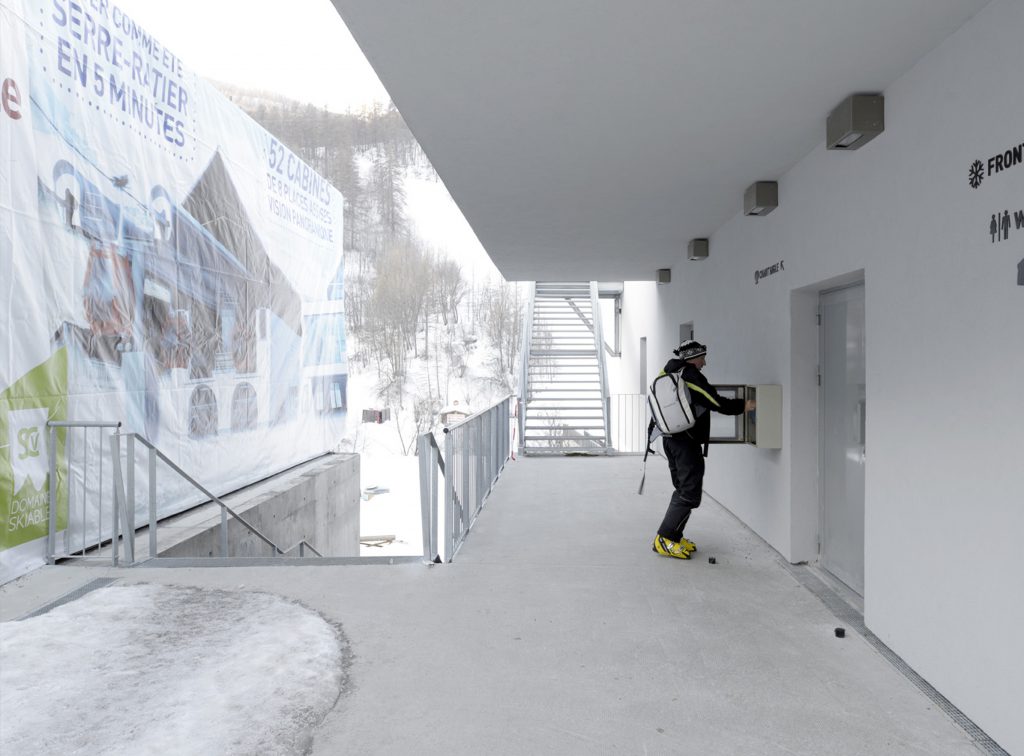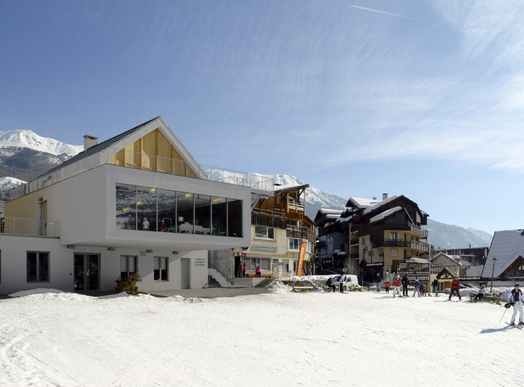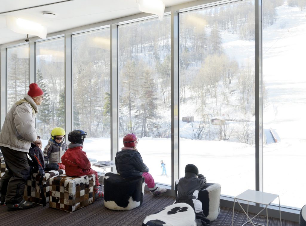 On l’a aussi décollé des bâtiments avoisinants pour que la vue et la lumière trouvent des passages et que la face Sud parle à la face Nord sans entrave. Puis lorsqu’on rentre dans le bâtiment, au rez de chaussée on est happé par la vue sur la piste tant et si bien qu’on en oublierait presque le prix du forfait.